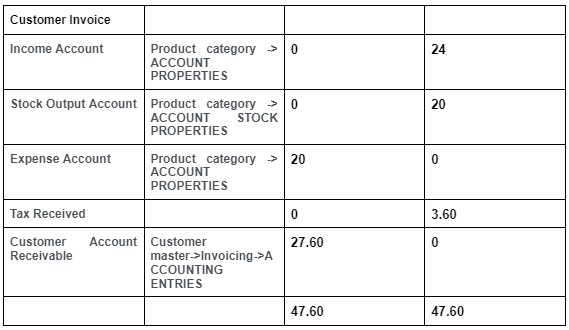 In this scenario, the stock output account is debited because the liability is decreasing, and the stock valuation account is credited because the asset is decreasing.Next we create an invoice.